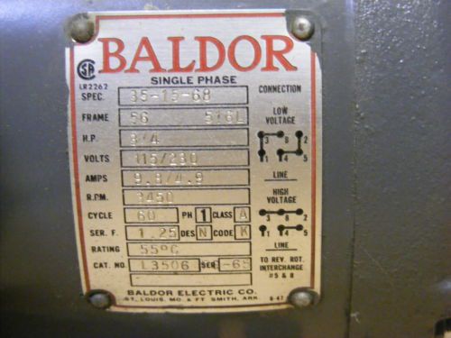 BALDOR 3/4 hp 3PH Electric Motor 230/460 3450 RPM 5/8" Shaft