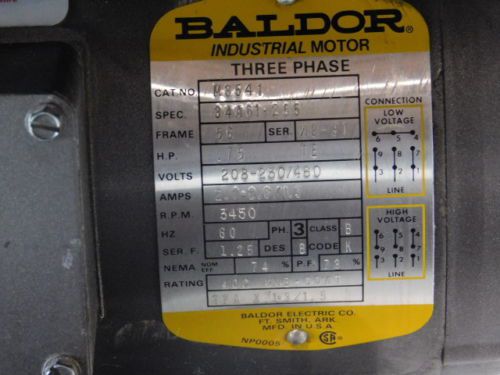 BALDOR 85.600012 5HP 208-230/460V-AC 3450RPM 184TC 3PH ELECTRIC MOTOR D509268