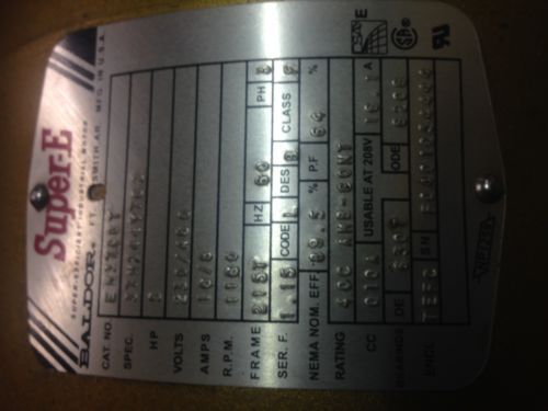 BALDOR EM3154T SUPER-E 1-1/2HP 200v 1740RPM ELECTRIC MOTOR
