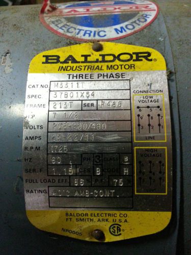 Baldor Electric EM3709T 7-1/2 HP 3520 RPM 208-230/460 V 3 Ph Motor