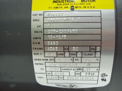 “ITEM IS USED BUT IN 100% WORKING ORDER, ITEM DOES HAVE SCRATCHES,MARKS,DUST ECT FROM USE AND STOCK/SHELF LIFE!!! VIEW PICTURES!! 5HP, 3450 RPM, 208-230/460V, 13-12/6 AMP, FRAME 184T, 60HZ, PHASE 3 – SHAFT SIZE: 28.6MM DIA – 69.2MM LENGTH” |