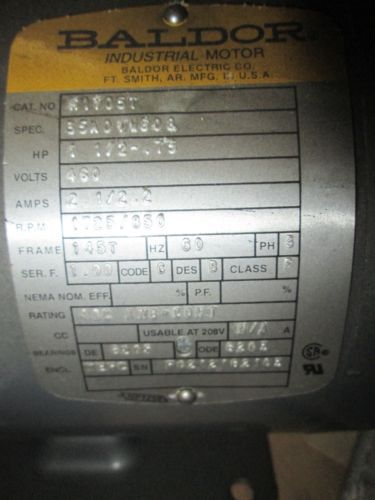 Baldor Hazardous Electric Motor 230/460V 1-1/2HP 1725Rpm S F0406163325 BU695670