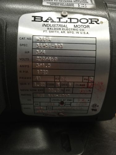 NEW! CENTURY BELT DRIVE MOTOR 3/4HP, 3PH, 1725 RPM, 200-230/460V, Fr: 56, H851V2