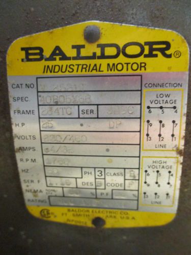 Baldor Reliance Severe Duty 25 HP 575 V 1770 RPM Electric Motor