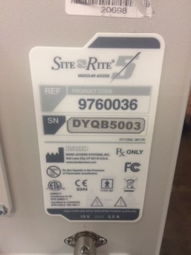 | Seller Notes | “Bard Site Rite 5 Vascular Access (Ref 9760036) ULTRASOUND SYSTEM w/ Linear Probe (Ref 03066095) **Fully tested, fully functional, good condition” |