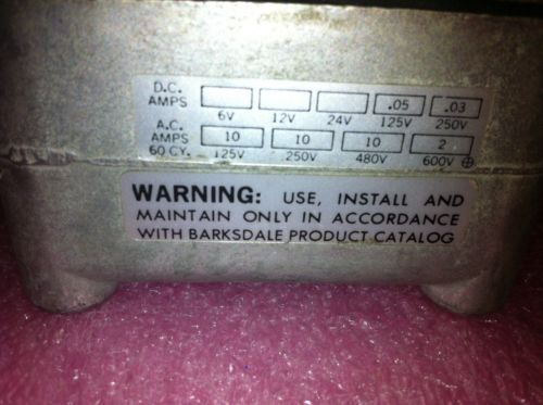 BARKSDALE E1S-H15 PRESSURE 0-16PSI VALVE 125/250/480V-AC 10A AMP SWITCH B478657