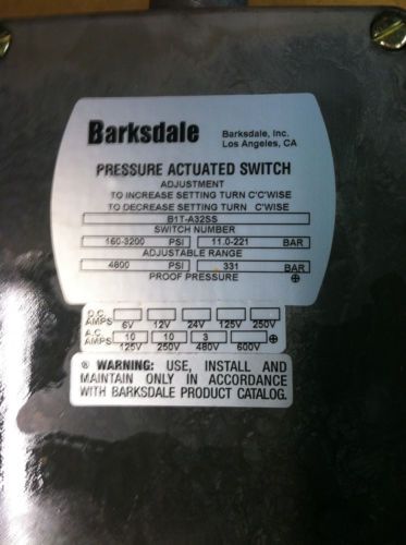 Delaval Barksdale 96100-BB2 Pressure Switch, New