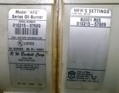 | Seller Notes | “This Beckett Burner was installed new, right before we converted to Natural Gas. This burner sat in the garage for a couple of years. This burner was operating the day it was decommisioned. See the description for important details regarding the specifications of this Beckett Burner.” |
