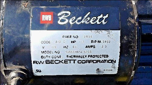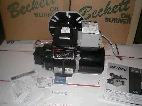 THIS IS A BECKETT AFG OIL BURNER IN VERY GOOD CONDITION. IT HAS BEEN TESTED, THOROUGHLY CLEANED AND SERVICED. DETAILS: EMERSON MOTOR, BECKETT IGNITOR, HONEYWELL 8184G PRIMARY CONTROL, 7" BLAST TUBE WITH AN INCERTION DEPTH OF 5.25", NEW PUMP SCREEN, AND A F-0 BURNER HEAD.