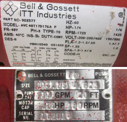 Bell & Gossett ITT 70-GPM Pump & 3-Hp Marathon Motor 3-Ph 175-PSI 1760RPM