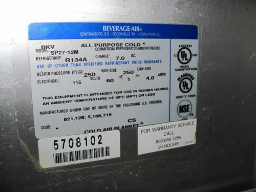 Beverage Air Stainless Refrigerated 27" Sandwich Pizza Work Prep Unit Table SP27