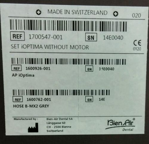| “The iOptima unit (seal still unbroken) and iPod touch are brand new. The Handpieces are like new, having minimal usage and always properly cleaned and lubricated with Bien Air's Spraynet and Lubrifluid.” |