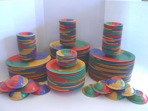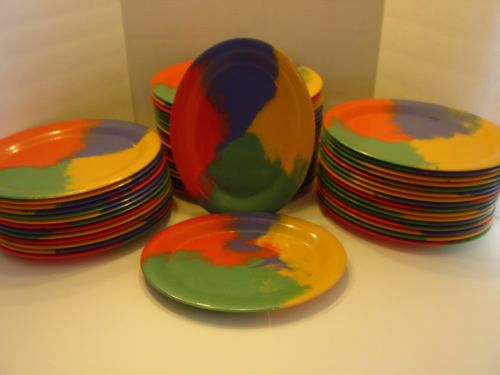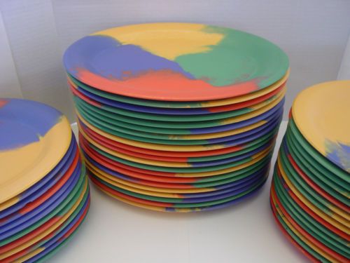 Lot of 125 of Green Melamine Carlyware Texas Ware 9" & 6-1/2" Plates, Bowls COOL