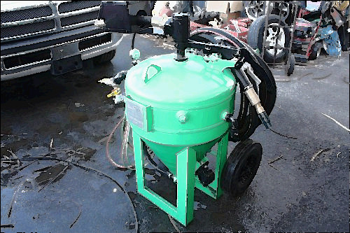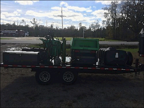 DB500 with a Sullivan 185CFM compressor. Two 50 foot blasting hoses and deadman hose extensions, 50 foot air hose to move pot if desired, trailer ramps, three nozzles #5, #6, and Fan nozzle, two shovels, 150 gallon water tank, water pump, 50 ft 3/8 air hose and nozzle to blow off trailer and areas, extra pinch hoses, and fully conv