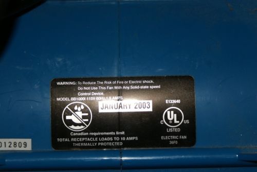 RIDGID Model # AM2560 1625 CFM Air Mover Unit (Carpet Dryer) -B2518B