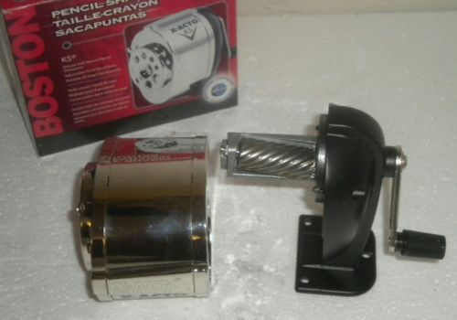 Vtg Boston KS Manual Pencil Sharpener Chrome 8 Hole Wall Desk Mount Wood Handle