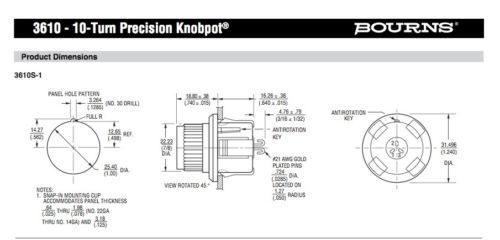 Reliance 10 turn potentiometer, 5000 ohms, HEL05B10, panel mount, 1/4 inch shaft