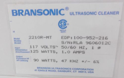 | Model | Branson 2210R-MT Ultrasonic Cleaner |