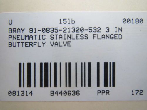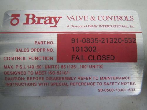 BRAY 90-0630-21320-532 ACTUATOR 2IN STAINLESS DISC WAFER BUTTERFLY VALVE B395233