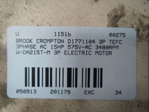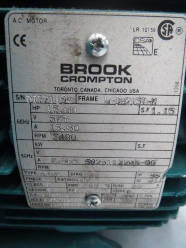 BROOK CROMPTON F132028 15HP 580-600VAC 3520RPM L254T 3PH AC BLOWER MOTOR B386775