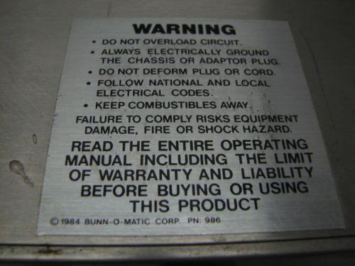 CURTIS CAFE WARMER NO BASKET WORK WELL PROFESSIONAL MODEL SCCAFE2DB10A000 COFFEE
