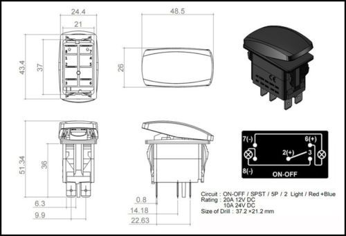 20 X , Miniature rocker switch 300 DPI , 0n 0n 2A @ 250 VAC , 5A @ 120VAC