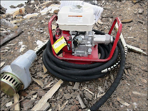 Oztec 5 Horsepower Back Pack Vibrator Power Unit with 7 Foot Cable and 2-1/2" Rubber Coated head.Used as a Demonstrator,started a few times for show. Hy Cycle guys wouldn't switch over to the Oztec System which is much easier to use than that old 3 Phase Hy Cycle system that has the electric motor in the head and always burns out when you have a fresh pour and need the vibrator "Right Now".