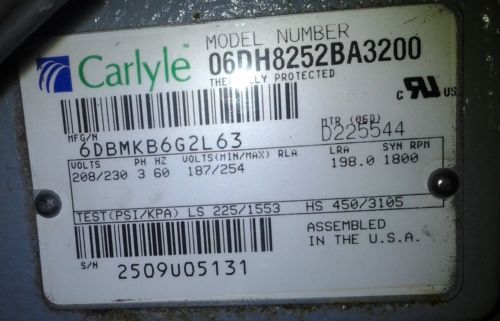 | “New Compressor pulled from New R-22 Overstocked equipment” |