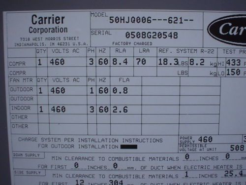 Carrier Rooftop Unit RTU 48TJE005---501-- 208/230V BTU Input: 115000 Used