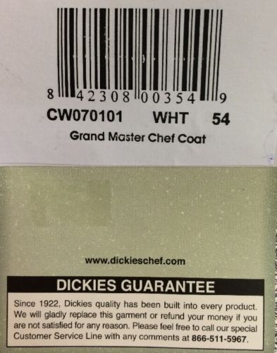 Chef Jacket Dickies CW0700102 Restaurant Double Button White Uniform Coat 50 NWT