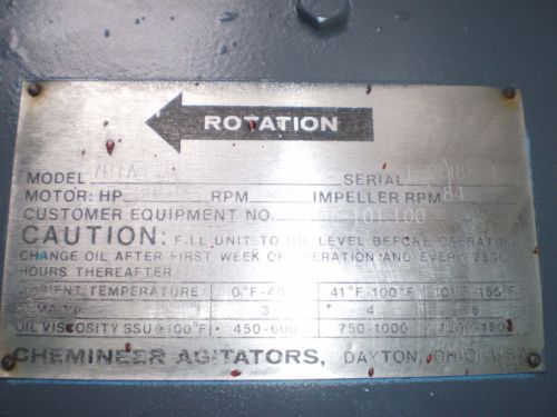 LIGHTNIN XJQ-230 TANK MOUNTED MIXER, 5 RATIO, 2.3 HP 1800 RPM, 208-220/440 VOLTS