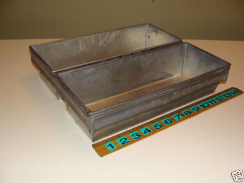 | Seller Notes | “This is used but still VGC. Strap is marked Chicago Metallic 56. Each loaf size is about 5" x 13", and overall size of the strapped pans is about 11-1/2" x 13-1/2" 3-1/4" tall - so though this is a commercial pan it would fit in an average home oven for all you bread bakers out there!! This sale is for one 2 loaf pan as pictured. There are others available if buyer wishes to purchase more.” |