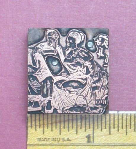 Young Boy or Girl Warming Up By Fireplace Image Letterpress Printing Print Block