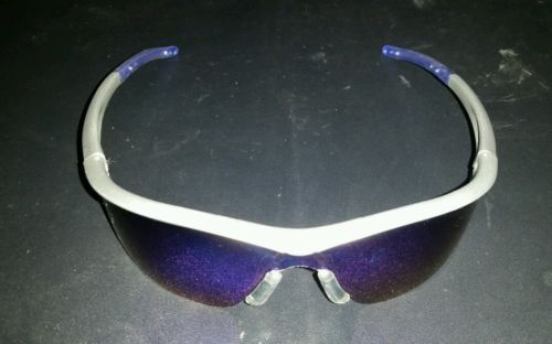 Silver and Blue safety sunglasses. New with cord, but soft carry case missing