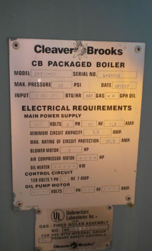 Kewanee 200 HP 15 PSI Steam Scotch Boiler L3S-200-G