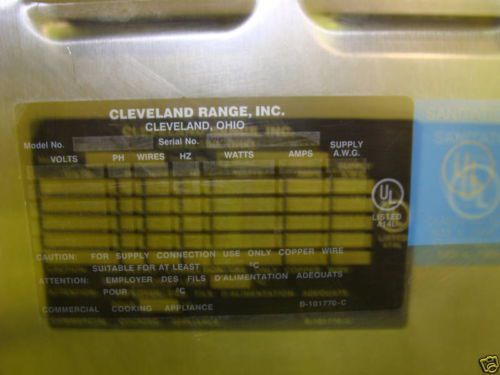 "CLEVELAND 21CET8" COMMERCIALELECTRIC STEAMCRAFT ULTRA 3 STEAMER OVEN COOKER