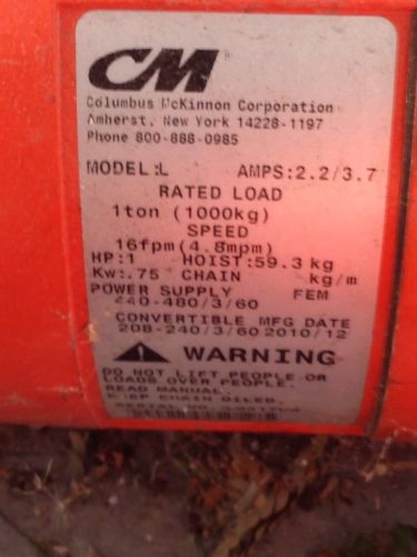 CM LODESTAR 1/2 TON ELECTRIC CHAIN HOIST (MODEL: J, 32 FPM)
