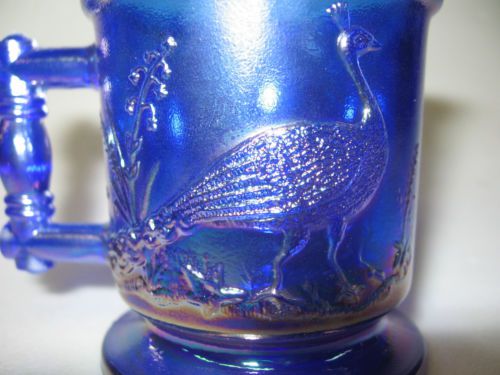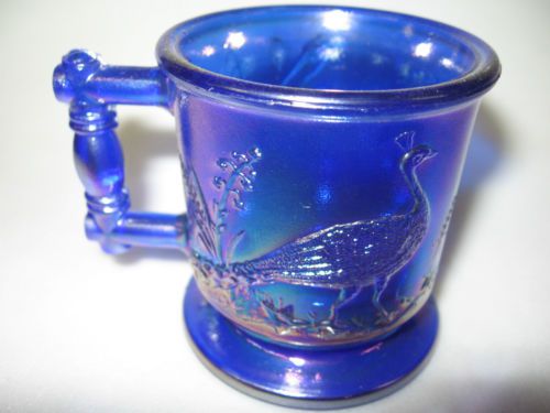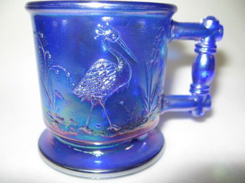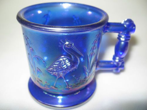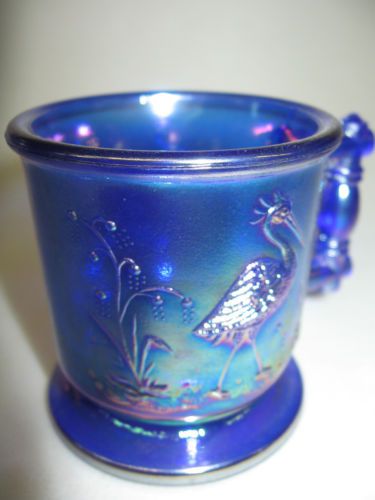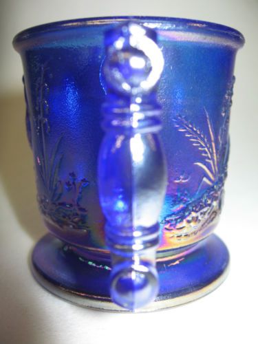 Cobalt blue Carnival glass salt cellar celt duck on nest basket / dip boyd swan