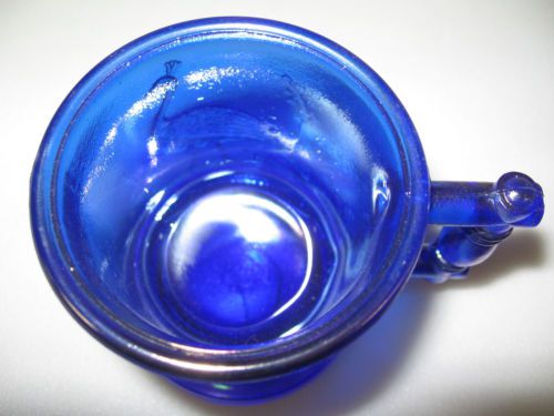 aqua Cobalt blue glass tabletop toothpick match holder art top hat daisy button