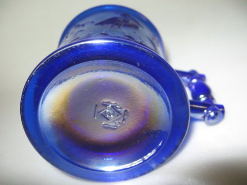 Cobalt Blue iridescent carnival glass tabletop toothpick holder stogie barrel nr
