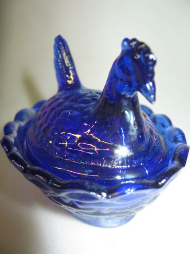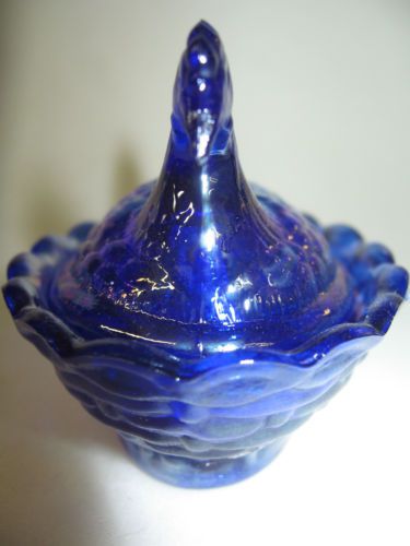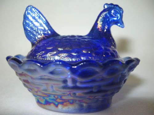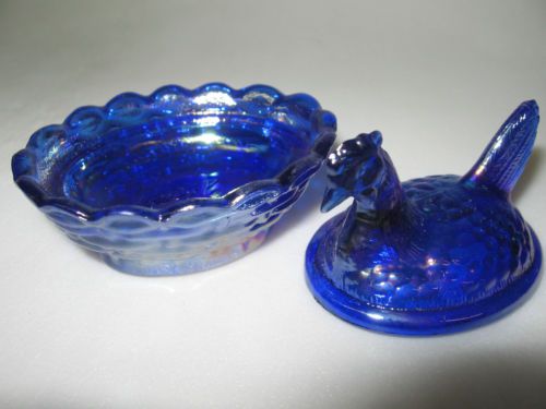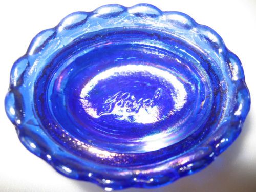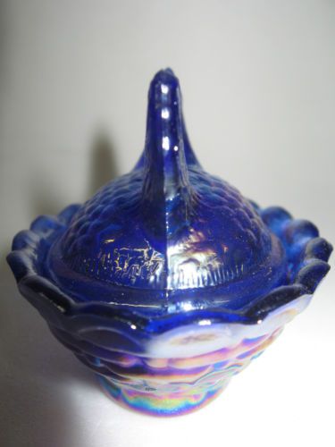 Cobalt Blue carnival iridescent glass Daisy and Button pattern Shoe Slipper Boot