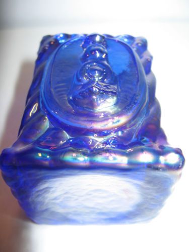 dark cobalt blue carnival glass salt dip cellar celt flowers pattern art master