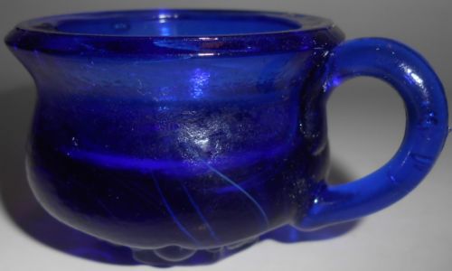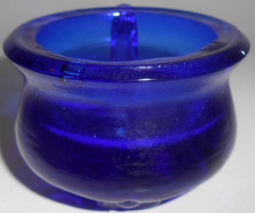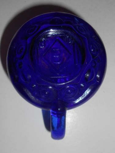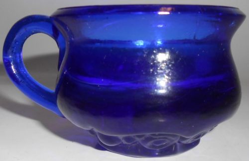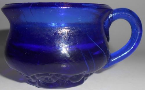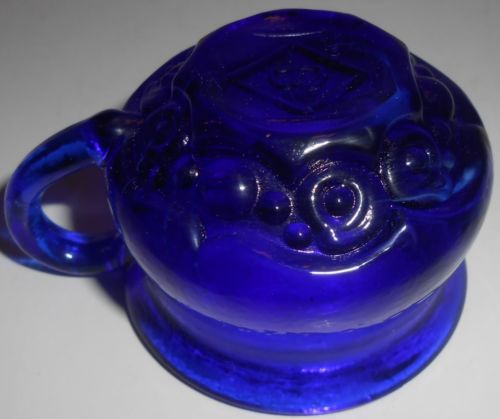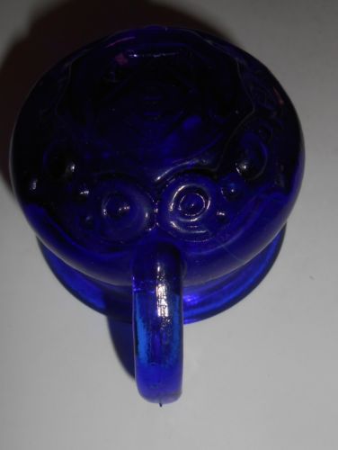 Cobalt Blue glass raised rose leaf pattern Shoe Slipper Boot flowers floral art