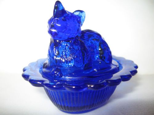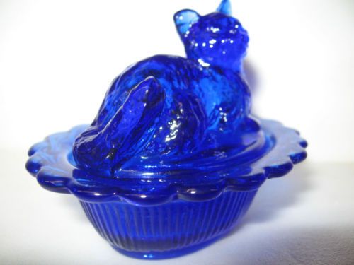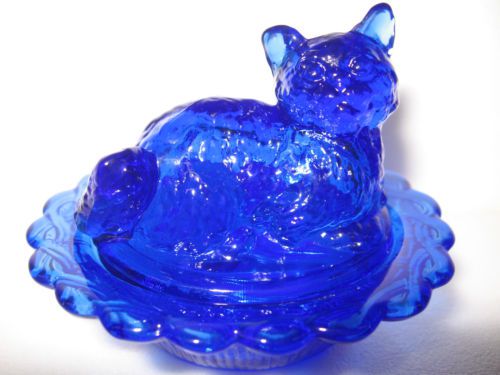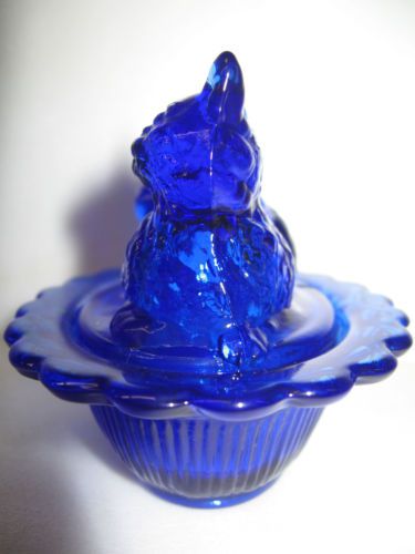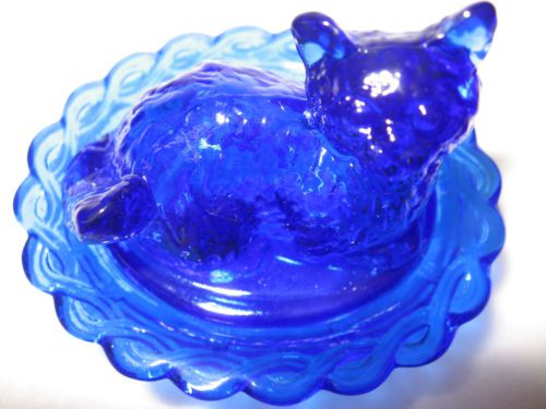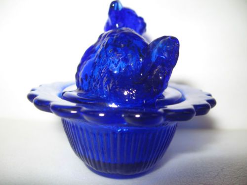 Vintage Blue Milk Glass Hen on Nest Opaque. 4.5" Tall