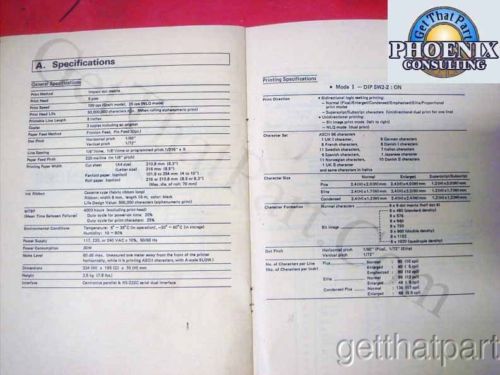 | Seller Notes | “Acquired from a liquidation. Actual item from lot is shown. Used unit in oem hard travel case packaging as shown. Includes oem manual and cable kit. Unit shown is actual unit - both serial and parallel interface. Internal power supply. Only what is shown is included. Also includes the OEM ribbon cartridge - though you should plan on a new one when this unit is setup. Each unit has printed a test page with firmware code shown. Serial number L67246617 and Serial number H67232449. Guaranteed functional and guaranteed for 30 days. Many scientific applications, including printing from laboratory and other similar equipment for Cole Parmer machines.” |