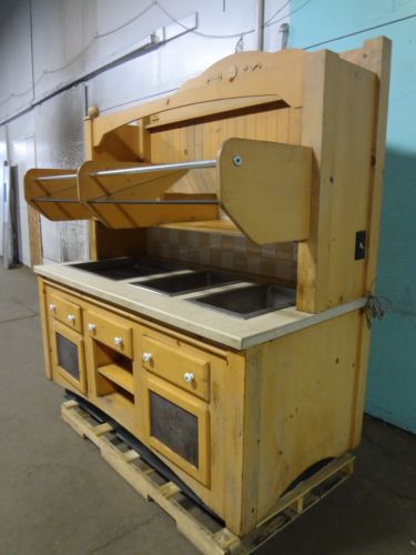 You are bidding on A GOOD USED CONDITION COMMERCIAL CUSTOM BUILT 1 HOT, 2 COLD + DRY DISPLAY LIGHTED GRAB-N-GO STATION MAKE: CUSTOM BUILT - NO DATA PLATE FOUND MODEL#: NOT FOUND "HATCO GLO RAY" HOT PLATE WARMER 115V, 1Ph, 60Hz - ADJUSTABLE :90F - 200F "AMERICAN PERMANENT WARE" (2) INSULATED ICE BATH WELLS PLUMBED FOR DRAINAGE w/SHUT OFF VALVE MODEL#: CFW-1D APPROXIMATE DIMENSIONS: 84"H x 74 1/4 "W x 36"D (OVERALL) 19 1/2 "H x 69"W x 32 1/2 "D (UNDER STORAGE COMPARTMENT) 1/2 "D x 24"L x 19 1/2 "W (HOT FOOD WARMER DISPLAY MERCHANDISER) 6"D x 12"W x 20"L (EACH COLD ICE BATH DISPLAY WELLS) GLASS SHELVES: (R) 30 1/2 "W x 25"D / (L) 38"W x 25"D WOOD SHELVES:(R) 30 1/2 "W x 18"D / (L) 38"W x 18"D 71"W X 10 1/2 "D (TOP WOODEN SHELF) *NOTE: LIGHT BULBS NOT SUPPLIED. THIS UNIT WAS IN OPERATION WHEN REMOVED FROM A CLOSING BUSINESS. THE PHYSICAL CONDITION, AND ALL ACCESSORIES INCLUDED WITH THIS ITEM, IS AS REPRESENTED IN THESE PHOTOS, SELLING AS SHOWN. ID#: 20-0049H/CLOC. BB AREA Welcome to “Bargains “R” Ours Food Equipment”, where you can get Restaurant and Food Service equipment at a bargain! Our 35,000 sq. ft. warehouse, with over 4000 items, is located in Battle Creek, Michigan. We are one of the largest used restaurant equipment re-seller in South West Michigan specializing in Restaurant; Bakery; Pizza; Ice Cream Shop; Grocery Store; Deli; and Supermarket equipment. We work closely with Repossessing Companies and Banks, so we are able to get these equipment at low prices which we are able to pass on the saving to you. Why buy new? Save BIG $$$$ here! Thank you for visiting our store, and may you all have The Happy Life.............. We ship to your PAYPAL shipping address, UNLESS you contact us and tell us otherwise. Please call (269)-963-3333 for more information and faster service, if no answer, you may call (616)-638-2465..... Also click this link http://stores.ebay.com/BARGAINS-R-OURS to save big $$$$$ for restaurant equipment, indoor, outdoor lightings, household goods, tools and much more! For our store inventory, please visit our “pro-store”: www.Bargainsfoodequipment.com and save money here! Thank you very much for visiting our store... Bargains-R-Ours offers the following Policies: PAYMENT OF ITEMS We accept PayPal and other payment methods, please call us for specifics. Payment must be made within 5 days of winning bids, or acceptance of your offer. We will send you a final notice if we don't receive your payment after 7 days of the sale date, and report your account to eBay for dispute of non-payment. Then, we will re-list the item. If you are not so sure as to how to pay, un-willing or unable to pay for your purchase, please do not bid or make an offer. It is unethical, and a waste of both our time! You agree to pay a 15% “restocking fee”, if you do not pay after committing to a purchase, either by “winning an auction” or “making an accepted offer”. Regardless if you, or someone with access to your eBay account, made a mistake or have no funds available to pay for the committed purchase. For sales to Michigan residences, we are obligated by law, to collect a 6.00% sales tax SHIPPING AND CLAIMS Please check all items for damage immediately upon delivery, BEFORE accepting them from the Carrier!! If you fail to do so, you may forfeit any damaged shipment claims once and for all! We ship anywhere in US and Canada. For Canada, we need your “Custom Broker's” name and number for Custom Agency purposes. If you do not have one, we can refer you to one. For overseas shipping, we will ship to a “Port Terminal” anywhere within the continental USA. Then, you must arrange for your own shipping to the destination country. We have a loading dock and a forklift for local pick-up of large and heavy items Used equipment will be shipped in the condition as described in the published listing. Please allow up to 2 days after payment have been received and cleared to our account, for item to be shipped. The “Buyer/Consignee” is responsible for filing claims with the Shipping Carrier. We will give you any information you need, and assist you all that we can in expediting your claim. If anything is wrong with the item, please note it on all copies of the “Delivery Receipt” and immediately contact the Carrier to file a claim. KEEP the original packaging until inspected, and then follow the claim instruction. Please understand that the Shipping Carrier is a separate entity than us, and we are not liable for items that are damaged in transit, as they are beyond our control. Our shipping quote price is for delivery to a COMMERCIAL address with unloading as your responsibility. Please let us know if your shipping address is for a commercial/business, residential, church or school (For freight shipping only) You MUST specify whether or not you will need a “lift-gate” service to unload the shipment.( For freight shipping only) The name of your Business. ( For freight shipping only) The contact person for delivery The phone number for the contact person Additional $75 charge for residential delivery and $ 49.99 charge for ”lift-gate” unloading service (For freight shipping only) The buyer is responsible for all additional freight services they request at the time of delivery and any applicable surcharges/fees thereof, above and beyond what was ordered prior to shipment of the freight. For UPS shipment, you must provide a physical address other than a PO Box number REFUNDS AND RETURNS Returns that are unrelated to warranty issue, is subjected to 15% re-stocking fee Refund and Returns is governed by eBay “buyers’ protection policy” Items are sold as seen in the published photos of the listing. As a re-seller of “Repossessing Companies”, we tested all used equipment before removing them from their locations – (closing/closed businesses) - and publish all that what we know in the listing of the item(s). All warranty claims, must be accompanied with a “Certif