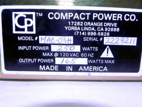 POWER-ONE MAP130-1024 150W MAX OPEN FRAME D.C. POWER SUPPLY ASSEMBLY