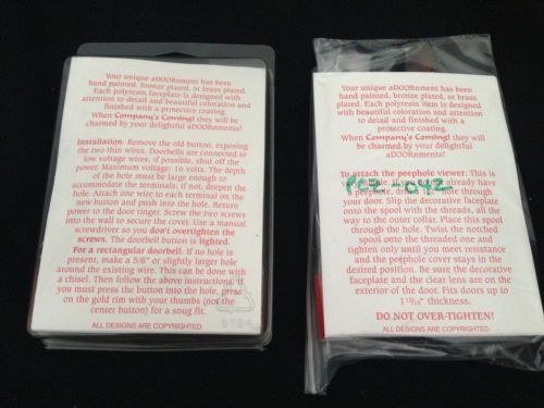 | Seller Notes | “Both are in new unused condition the Peephole is missing the outer hard shell but has all the interior components intact. Hard to find southwest themed pair for your door. Includes mounting screws for Door Bell, Lighted button and new brass viewer.” |