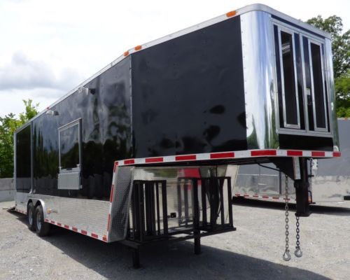 Concession Trailer Gooseneck Black 8.5 X 45 BBQ Smoker Event Catering Trailer