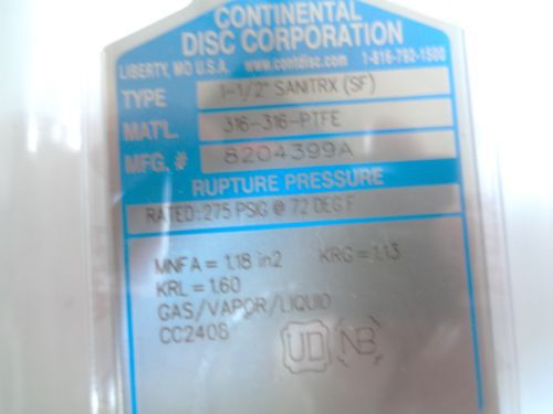 CONTINENTAL DISC 8191509A SANITRX 1-1/2" (40MM) 278PSIG@72 DEGREES RUPTURE DISC